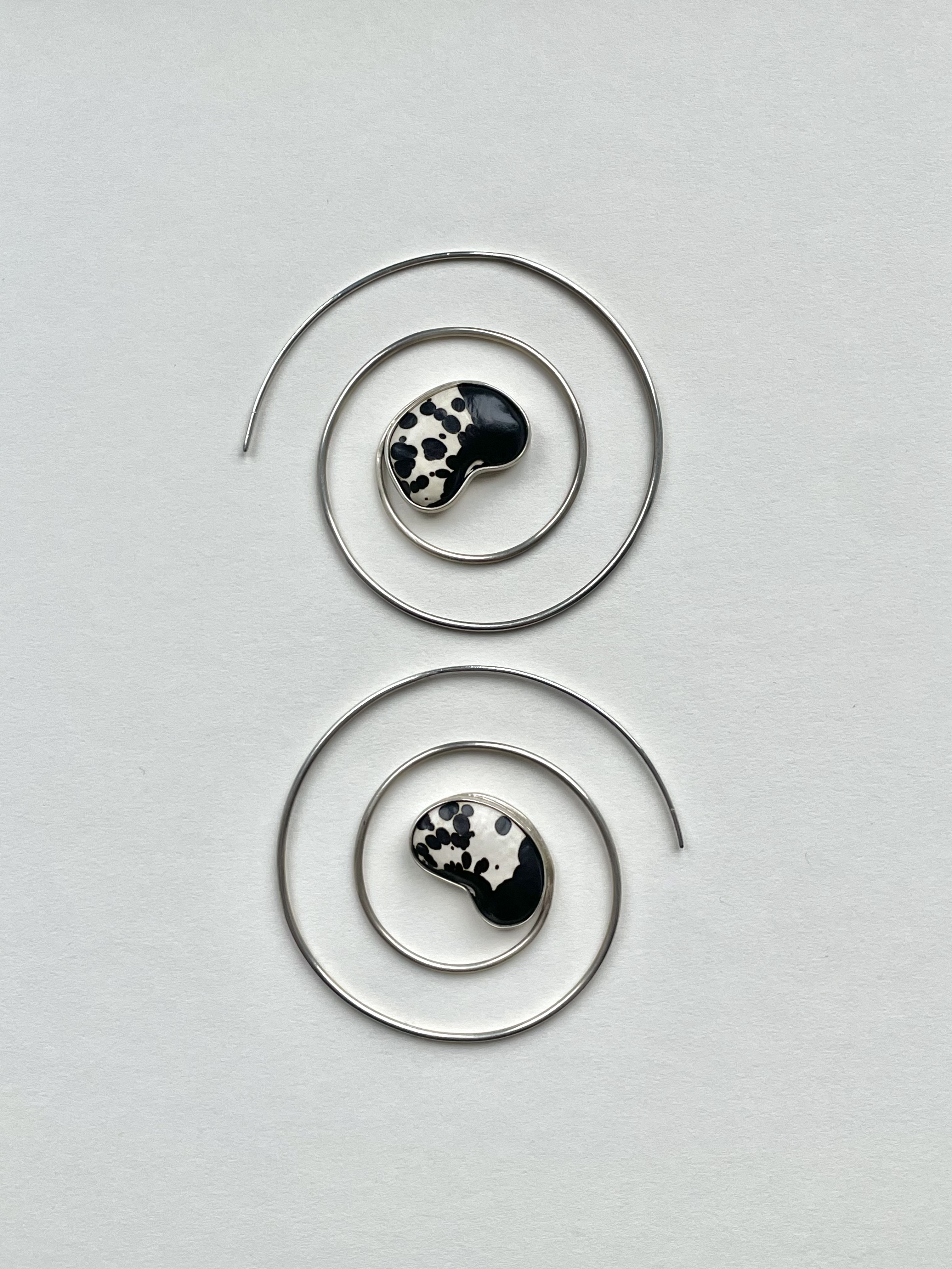 Inspired by my recent trip to South America, I have created a small collection of silver spiral earrings featuring ancient variety heirloom beans. By setting the beans in place of traditional gemstones I celebrate the beauty of unconventional natural objects. An ode to nature’s beautiful potential.